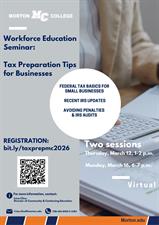 Workforce Education Seminar: Tax Preparation Tips for Businesses. Virtual workshop. Topics: